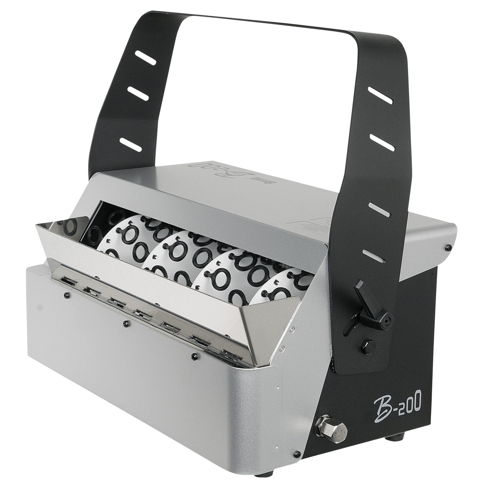 This allows for central control of the B-200’s bubble generation. The machine can also operate alone or with optional timer and wireless remote controls. With its large fluid reservoir, the B-200 will pack the venue with bubbles for as long as the party lasts!