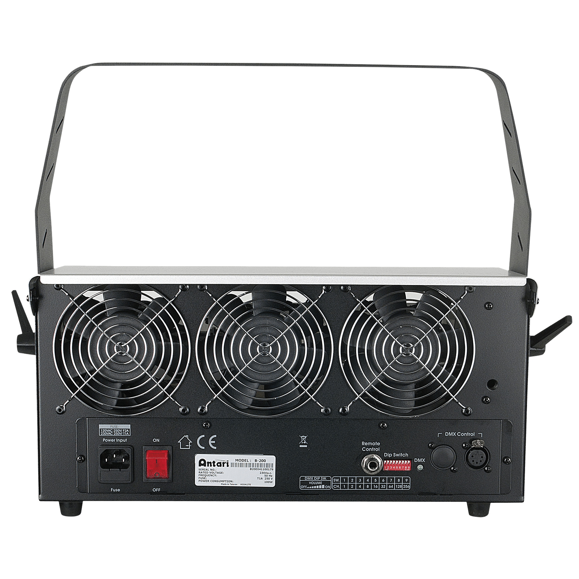 To say the B-200 is a high output bubble machine is too modest. It features four “Double Bubble Wheels” which generate a massive, continuous torrent of bubbles. The set of three fans at the back of the unit spread the bubbles far and wide. Designed with lighting designers, large clubs and theatrical productions in mind, this bubble machine has DMX onboard.