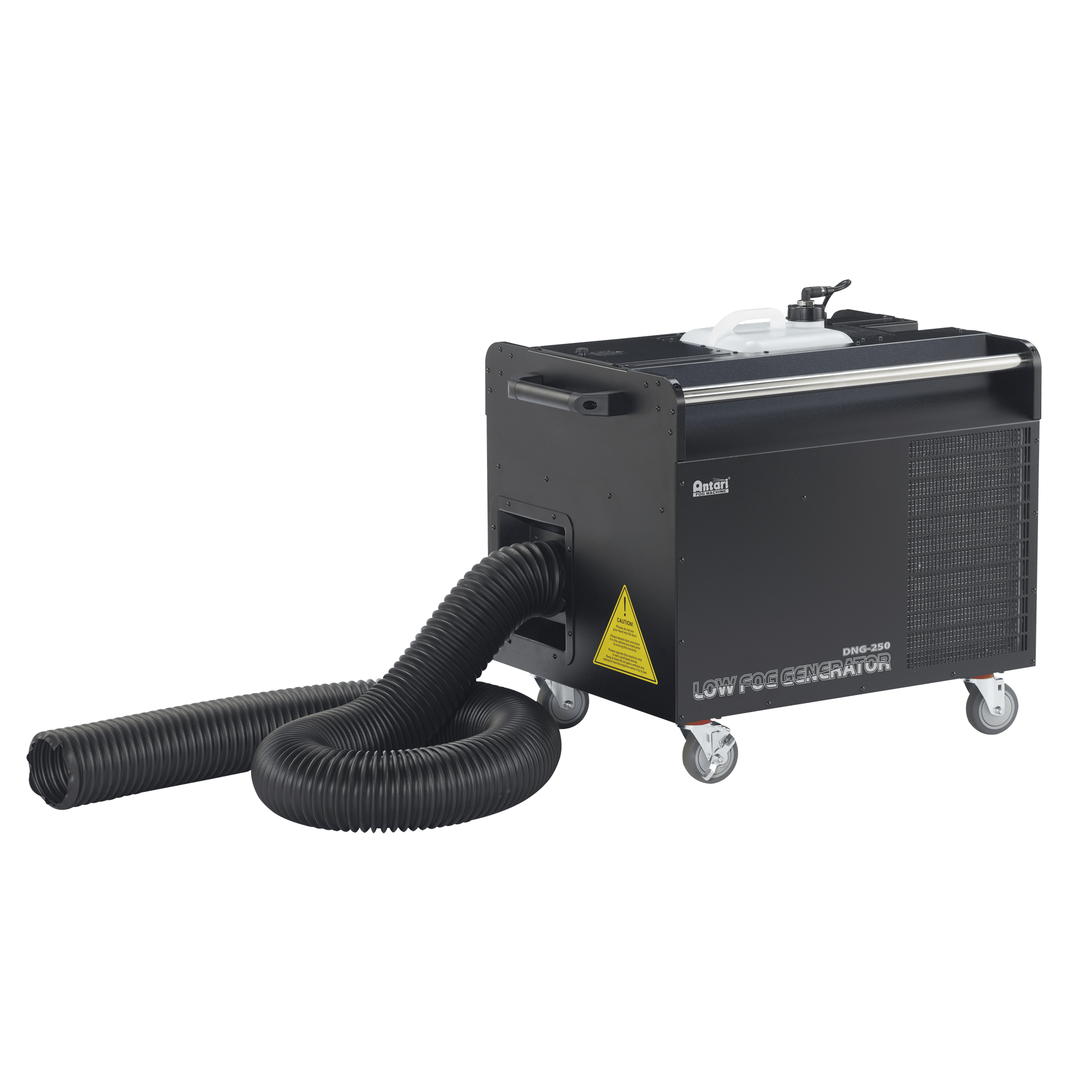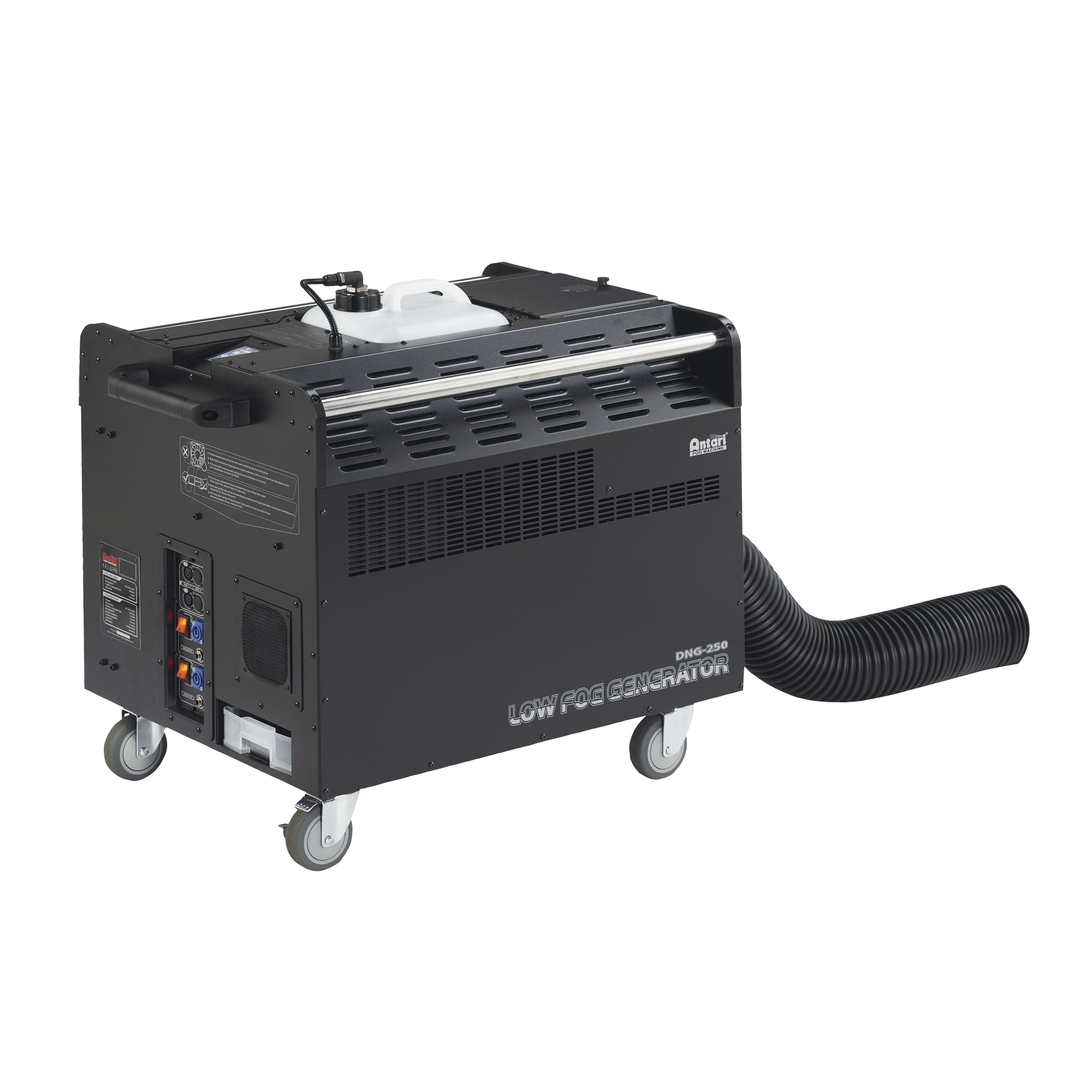 Following the same nice features of DNG-200, Antari compiled and designed the fogging machine and the condenser into one complete, solid yet still mobile compartment: the DNG-250. It has been equipped with a more efficient cooling system for the fogging, a highly effective compressor which goes well with the new style environmental friendly coolant and comes with a new heater system to generate much lower fog outputs.
