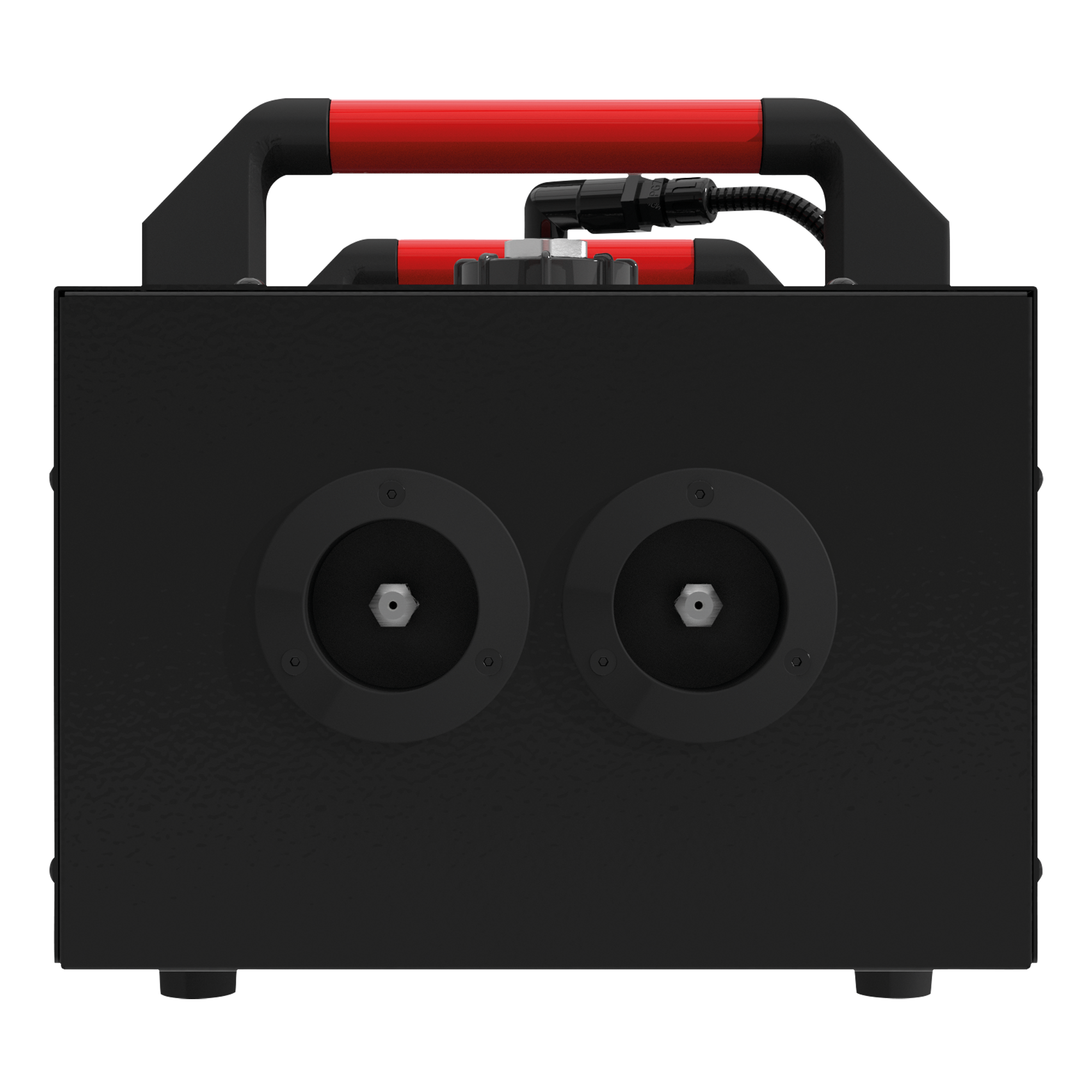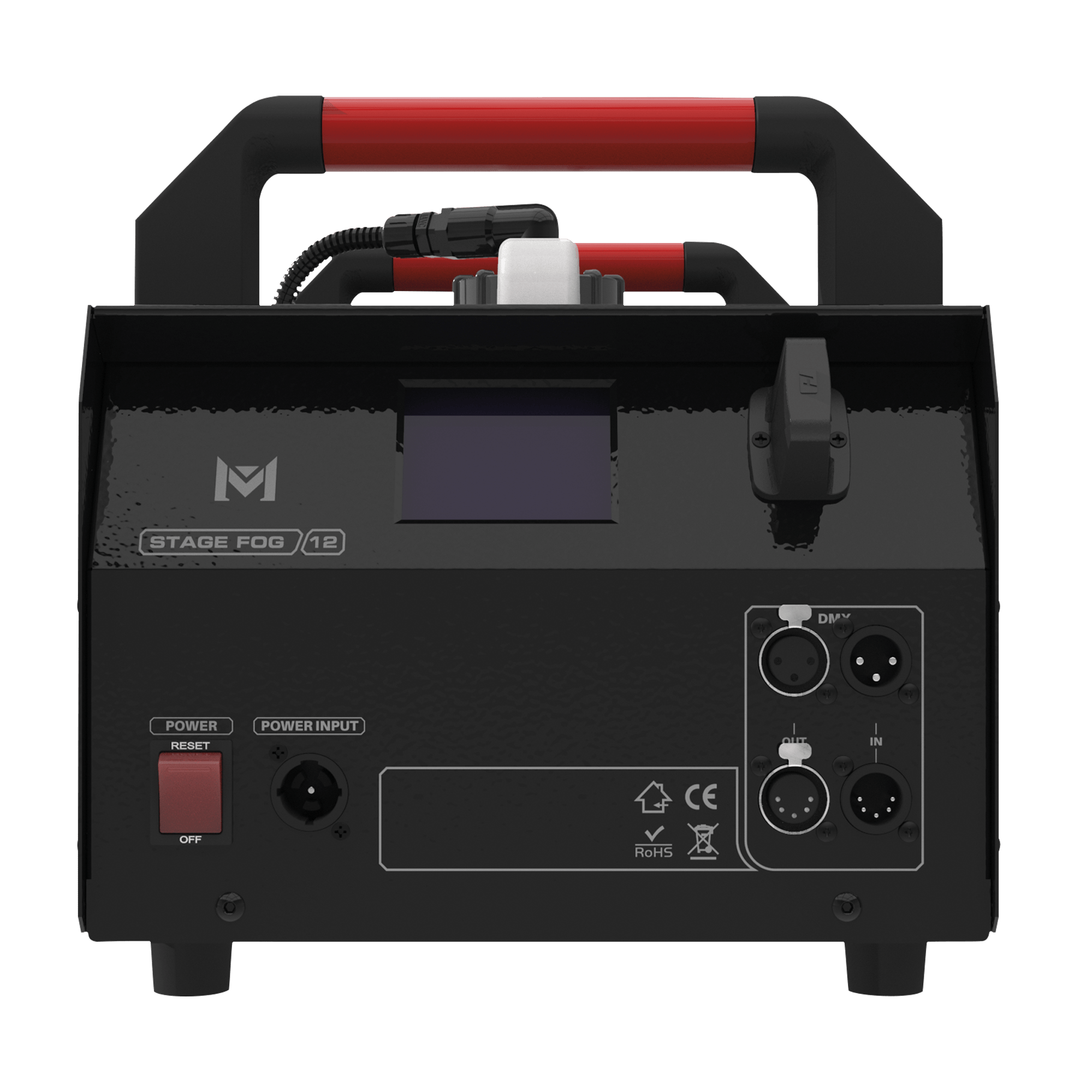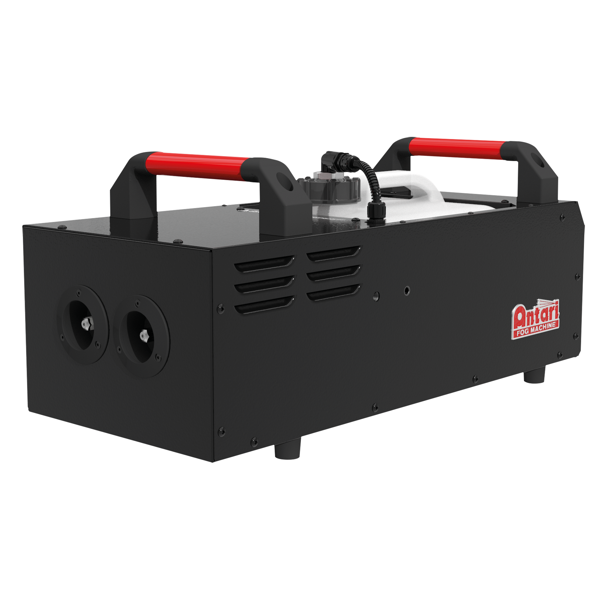 The M-12 features a dual output nozzle and dual pump system that can be controlled either independently or simultaneously, allowing a wider range of volume adjustment and output flexibility. Automatic sequential pump operation can produce endless volumes of fog in continuous mode, making the M-12 the highest output fog machine ever created by Antari.